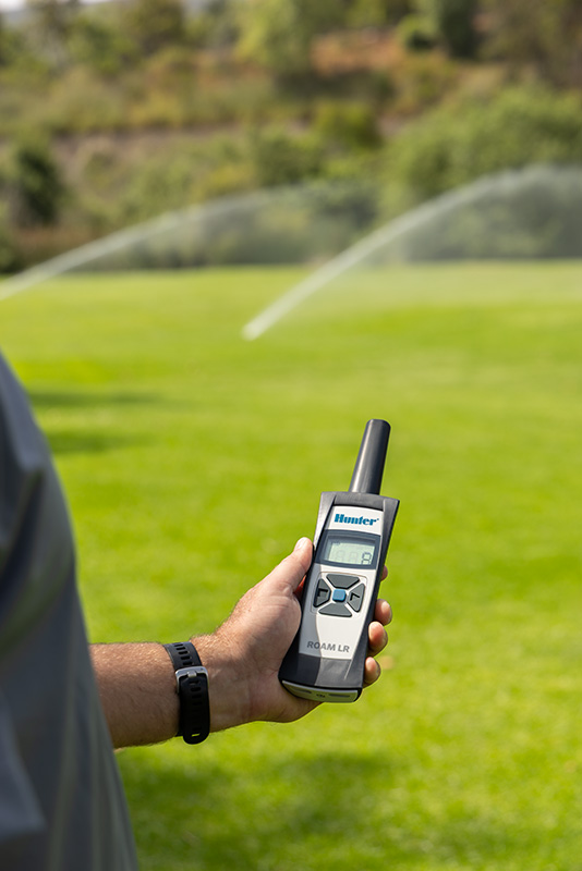 Zdalne ROAM LR to najlepsze narzędzie dla profesjonalistów zajmujących się nawadnianiem, którzy zarządzają dużymi obiektami. Ten pilot dalekiego zasięgu, zapewniający profesjonalną kontrolę bez konieczności posiadania licencji w promieniu do 3,2 km, eliminuje potrzebę odwiedzania większości sterowników Hunter z obsługą SmartPort® w celu konserwacji, zapewniając płynne rozwiązywanie problemów i sezonową konserwację bez dodatkowych czynności. Wytrzymały, niezawodny i gotowy do podróży między miejscami pracy, ROAM LR został zaprojektowany tak, aby pokonywać większe odległości — dzięki czemu Ty nie musisz tego robić.