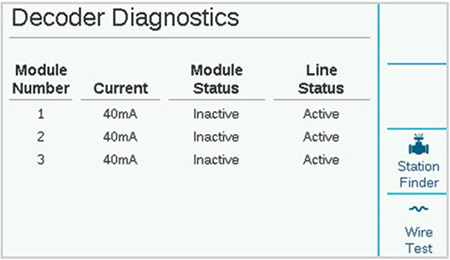 Test przewodów spowoduje ustawienie częstotliwości 60 Hz na wszystkich modułach wyjściowych i ich dwuprzewodowych ścieżkach, aby umożliwić śledzenie przewodów i wykrywanie usterek za pomocą standardowego miernika cęgowego prądu przemiennego. Jest to powszechna technika diagnostyczna służąca do wykrywania zwarć uziemienia.