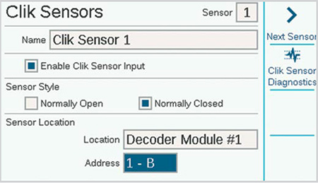 Aby skonfigurować czujnik, kliknij pole Włącz wejście czujnika typy Clik.