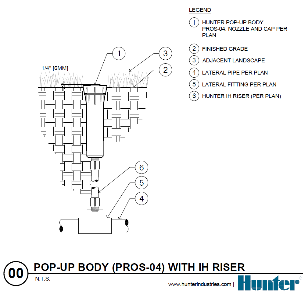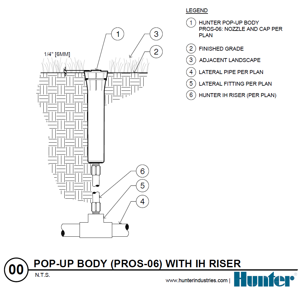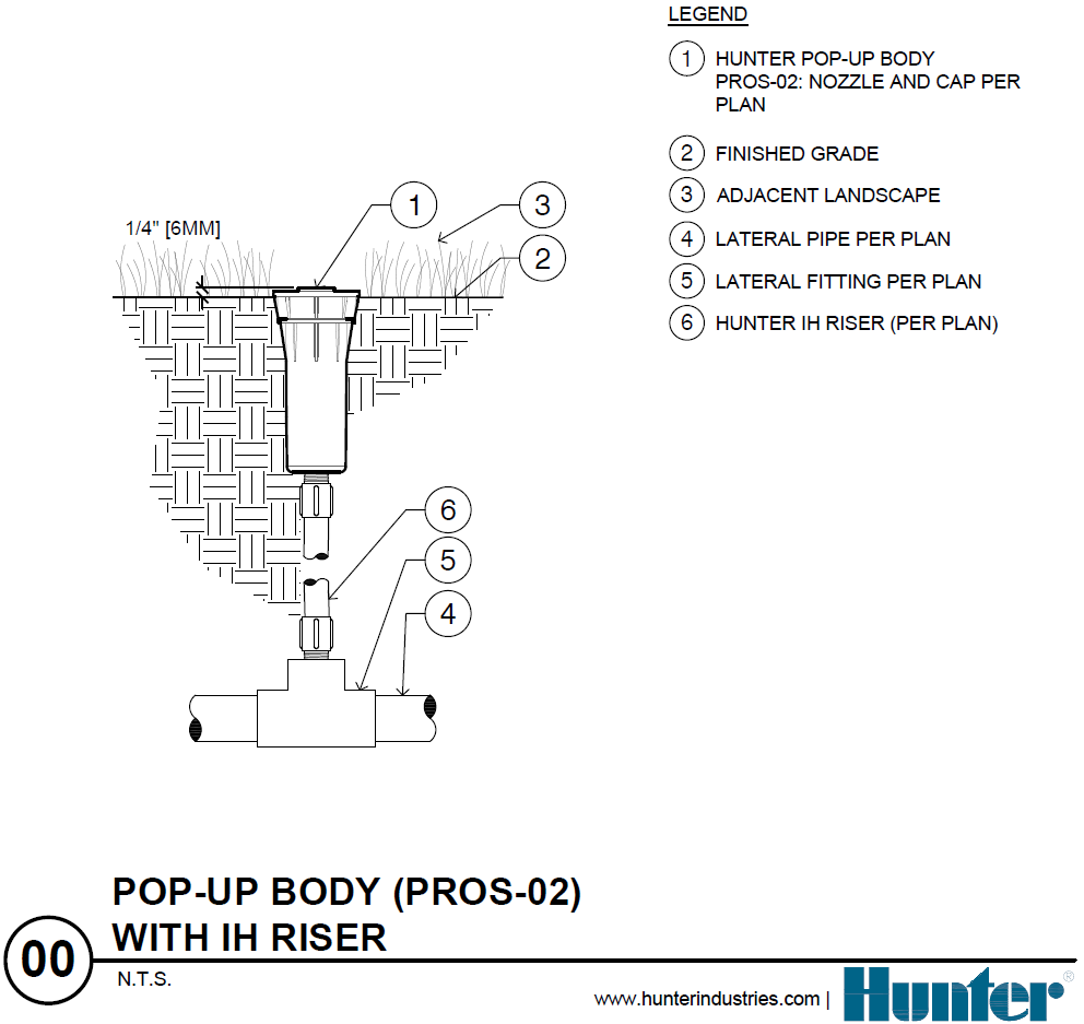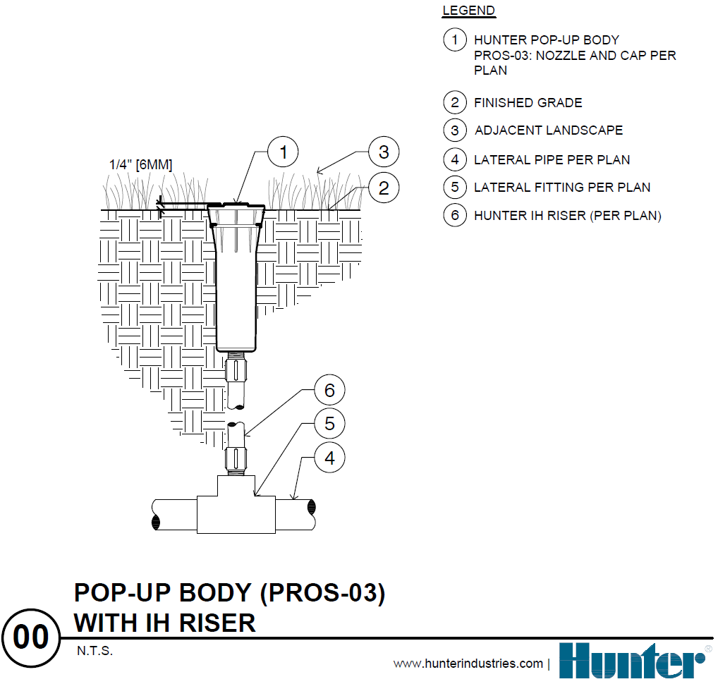 | PROS-06 | Corpo do aspersor Pro-Spray, escamoteável de 15 cm com entrada de ½"; nenhuma entrada lateral, aceita bocais de rosca fêmea | + |