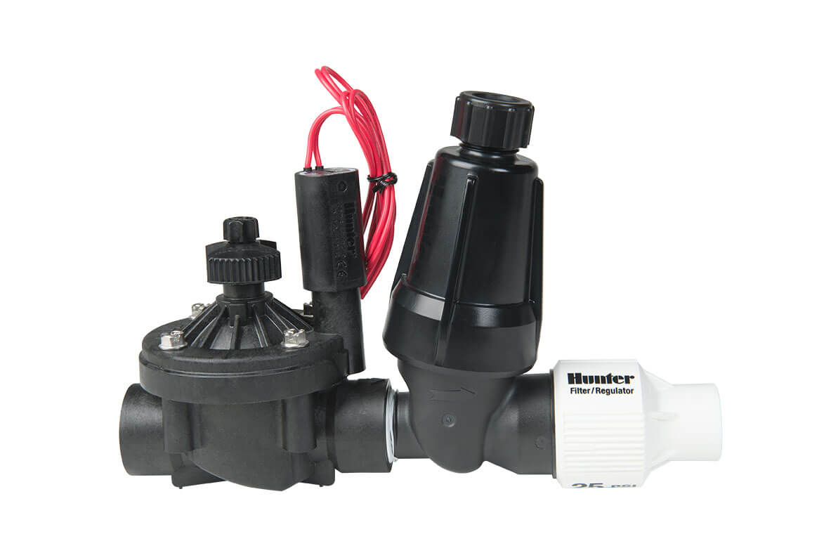 Комплекты представляют собой собранные на заводе конструкции, состоящие из популярного электромагнитного клапана PGV, фильтра и регулятора давления, предназначенные для управления зоной капельного полива. Клапаны PGV изготавливаются из высококачественных материалов, крышка корпуса сделана из армированного стекловолокном нейлона. Конструкция включает фильтр из нержавеющей стали, промывочную крышку для очистки фильтра и регулятор давления, для поддержания в системе давления 1.7 или 2.8 бар; 170 - 280 кПа.