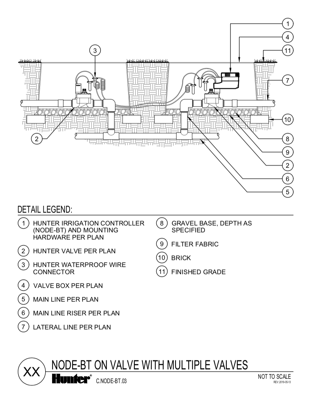 Контроллер NODE-BT питается от батарейки и не требует подключения к клапанной коробке. Поддержка мощной беспроводной технологии Bluetooth® позволяет легко управлять его работой прямо со смартфона. Контроллеры NODE-BT в водонепроницаемом корпусе прекрасно подходят для установки в садах, парках, теплицах, зеленых зонах разделительных полос и круговых перекрестков и других открытых местах, где нет возможности обеспечить питание от сети переменного тока.
