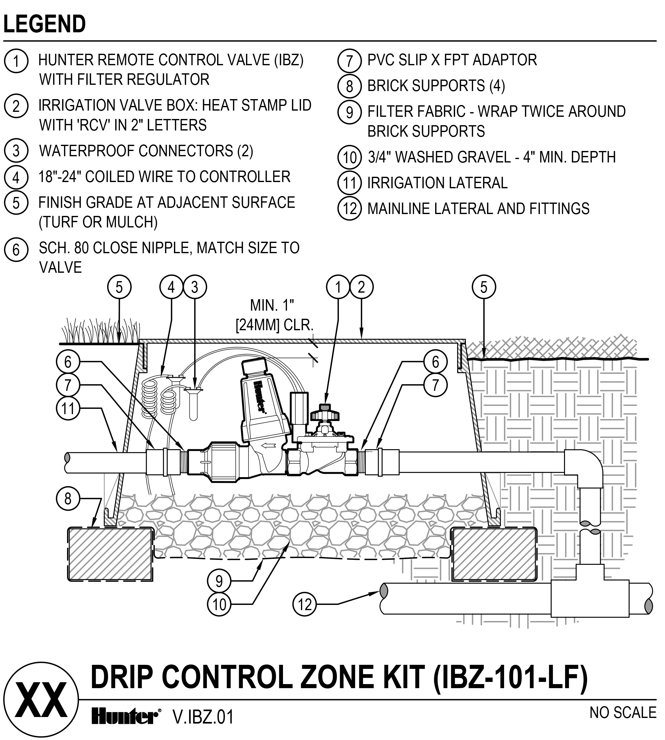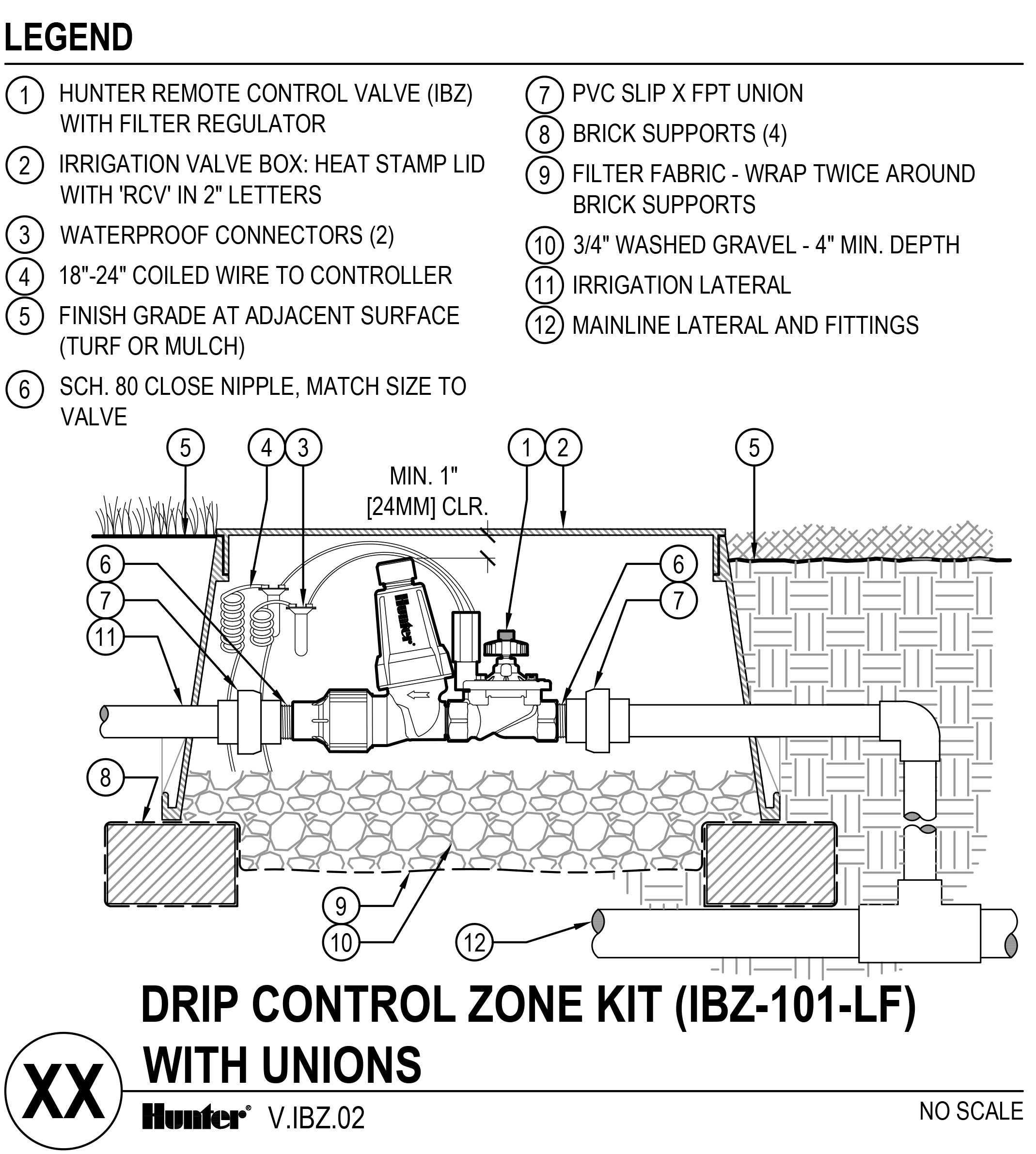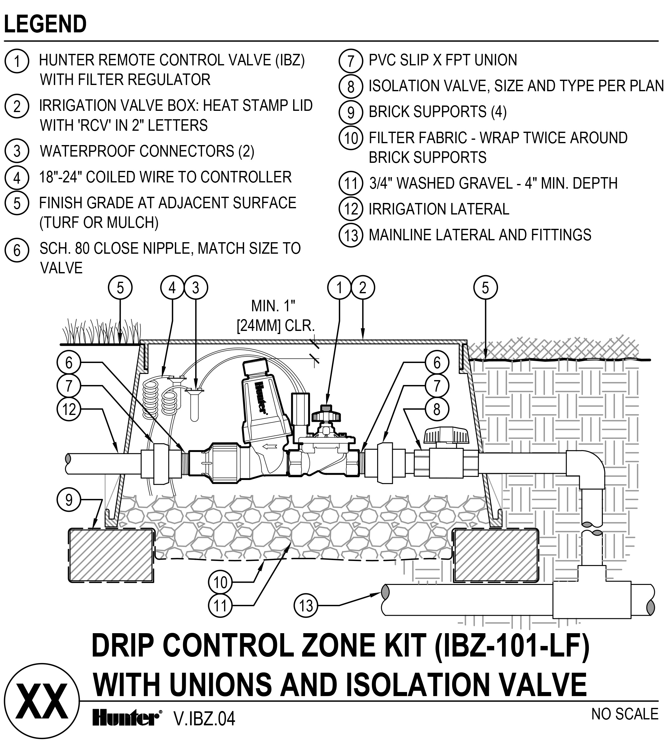 For the demanding requirements of commercial job sites, Hunter’s heavy-duty brass IBZ Drip Control Zone Kits are the most dependable solutions in the industry. The convenient kit offers the superior performance of the Hunter IBV Brass Valves along with a stainless steel filter and pressure regulator. Because these kits include pressure regulation that ensures a consistent 25 or 40 PSI, they can accommodate drip needs in any environment.