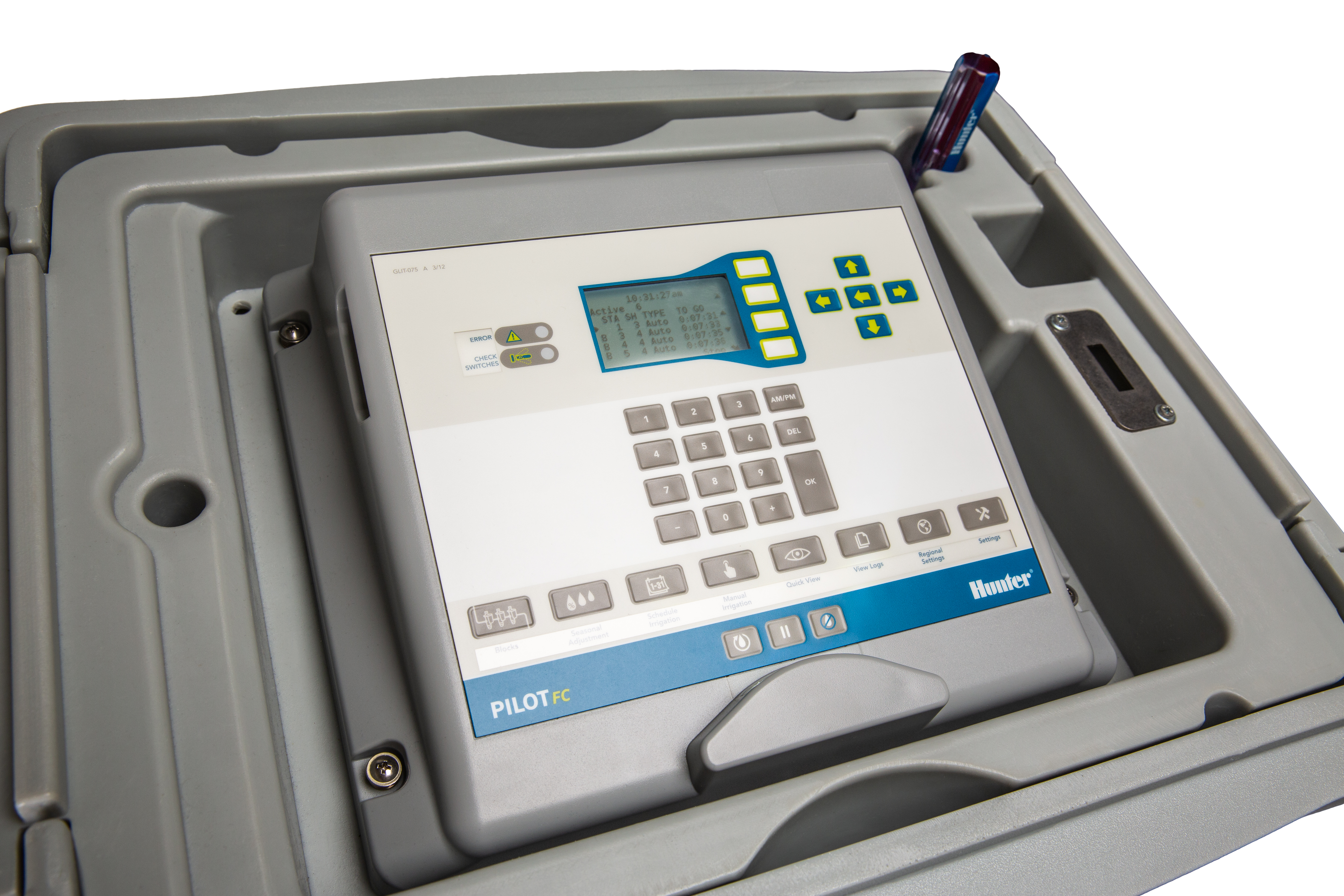 For a fully automated, flow-optimized system network all your controllers together with Pilot Command Center software. Communication options include wired, UHF radio and license-free radio. Power options include both 120 VAC and 230 VAC. Advanced troubleshooting features like a UHF radio signal strength meter and extensive system and error logging are complimented by Hunter’s Safety-Toggle™ station switches.