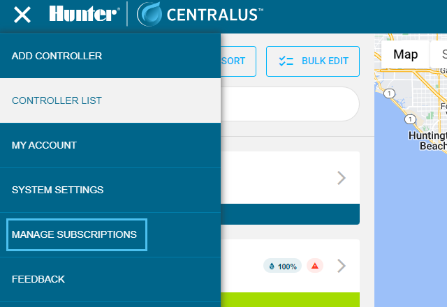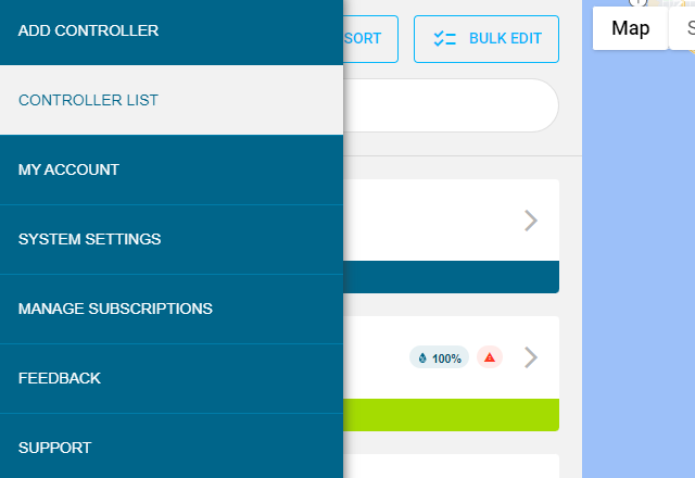 Вернитесь на портал Centralus. Нажмите на значок «Меню» и откройте вкладку «Список контроллеров».
