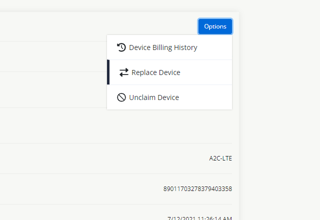 В разделе «Опции» выберите «Заменить устройство».