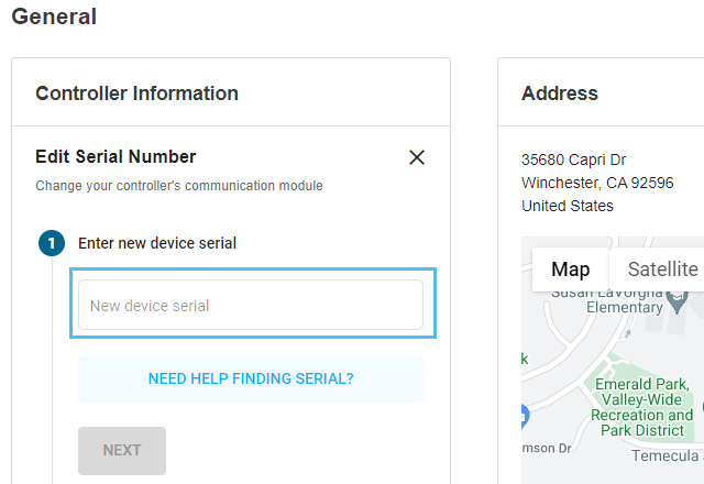 - Введите серийный номер нового устройства.