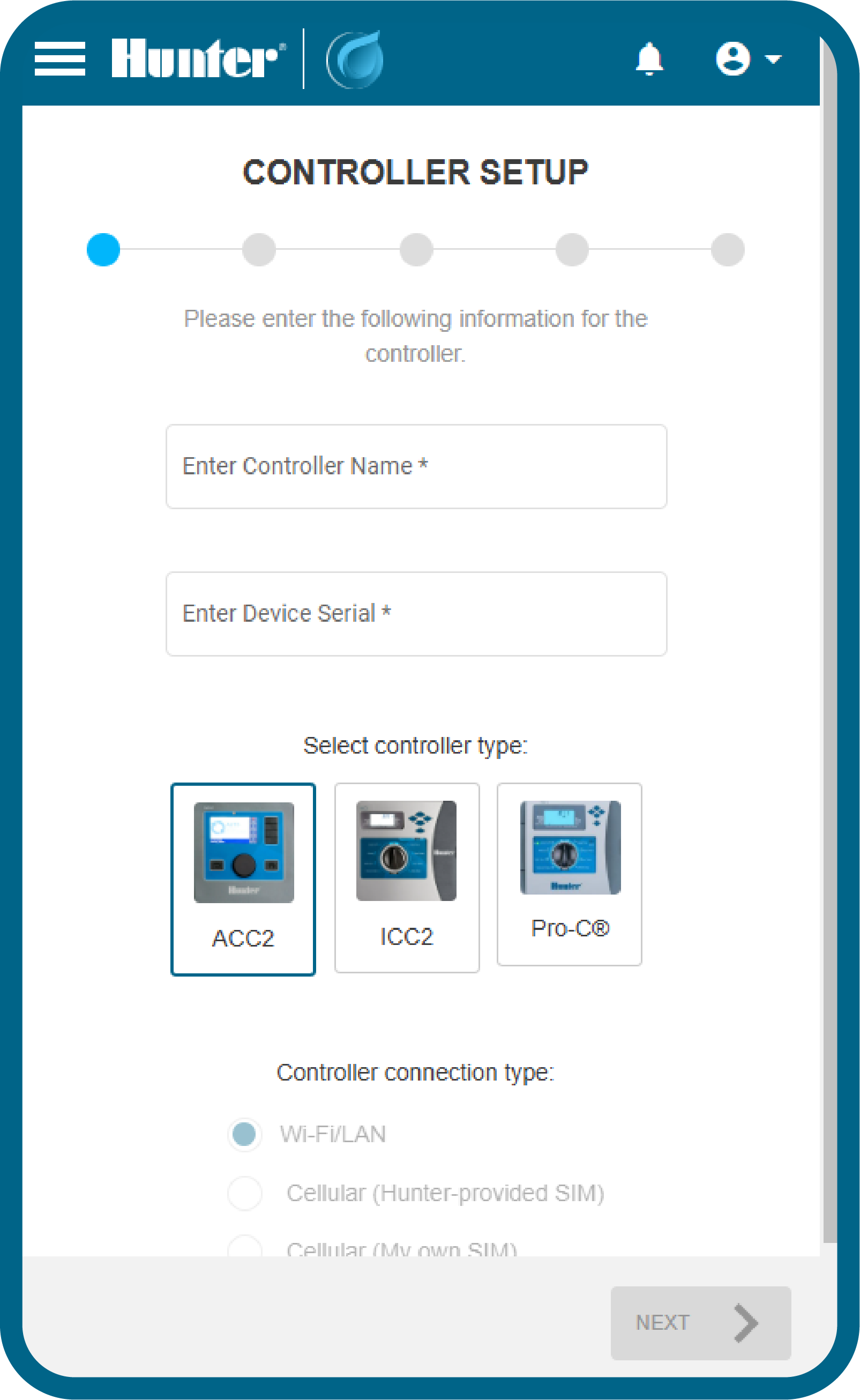 Чтобы выполнить настройку, посетите сайт нашей бесплатной платформы для управления поливом с компьютера или мобильного устройства, подключенного к интернету. Сайт расположен по адресу centralus.hunterirrigation.com.