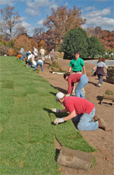 Working in conjunction with Project EverGreen (an organization dedicated to raising the awareness of the environmental, economic, and lifestyle benefits of landscapes), trees and shrubs were pruned, turf was fertilized, sodded, and mulched, plus other needed tasks were performed to help improve the green spaces at Arlington.