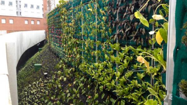 The project consists of 48438 ft2 (4500 m2) of irrigated area, there are 16146 ft2 (1500 m2) of Green Walls, 5382 ft2 (500 m2) of green roofs and 26910 ft2 (2500 m2) of regular landscape. The green wall irrigation system has 8 zones in the inside system and 14 zones in the outside installation. The regular landscape has 16 zones and the green roofs has 4 zones. The total system has 42 zones using such Hunter products as the ACC Controller, X-Core, PGV Valves, Accu-Sync, Solar Sync, ET System, Pro-Sprays and MP Rotators.