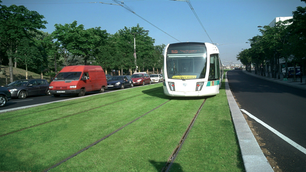 The TMS is the result of the growing need to increase public transportation capacity in Paris. But, the city leaders did not merely want to build rail lines and stations; they wanted to create something that would help improve the surroundings. Thus, the TMS is just one part—albeit a major one—of Paris Mayor Bernard Delanoe’s traffic-busting, anti-pollution promise to “green” transport in the French capital, and also reduce the noise levels associated with traditional gravel and concrete rail lines.