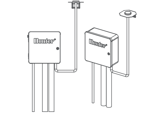 The antenna must be installed outside the controller enclosure on a metal bracket. Do not drill the enclosure directly. These installations require a Hunter wall bracket (P/N - WALLANTBRKT) to complete the installation. The antenna includes approximately 9' (2.8 m) of cable.