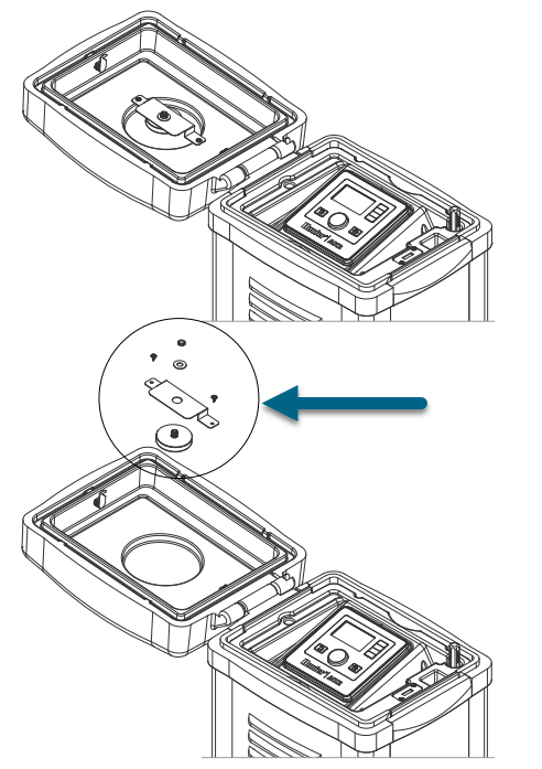 - Use the included screws to install the bracket so the antenna protrudes into the recess in the pedestal lid, as shown.