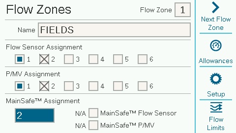 MAINSAFE™ ASSIGNMENT: If using this optional feature, select the MainSafe zone that is upstream from the Flow Zone. If MainSafe is not being used, leave this set to "None."