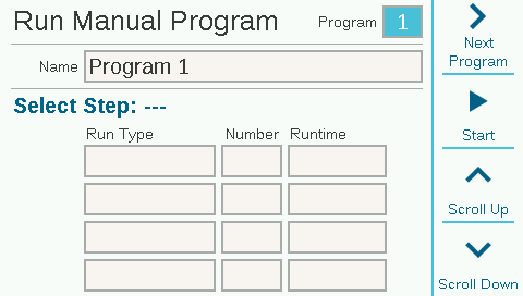Select a single PROGRAM to run manually that has preprogrammed information in the controller.