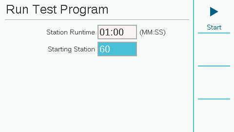 - Using the scroll wheel, select a STATION number to start on. It is also possible to specify a station number, and run all remaining stations from that number to the highest numbered station.