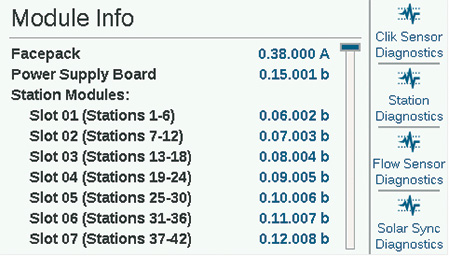 Select Module Info to see the current version of all firmware in all modules and components. Module slots or components that are empty or not reporting are shown as Not Present.
