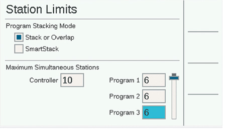 If Flow Manager is enabled, a maximum number of simultaneous stations per program can also be entered. This can be useful to force the controller to spread irrigation across multiple programs.