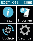 - Insert red and blue wires from the decoder into the EZ-DT Programming Ports. Select ENTER.