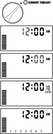 The EC controller uses a numbered seven-day calendar to schedule the days to water. The display will show the days of the week as numbers 1–7.