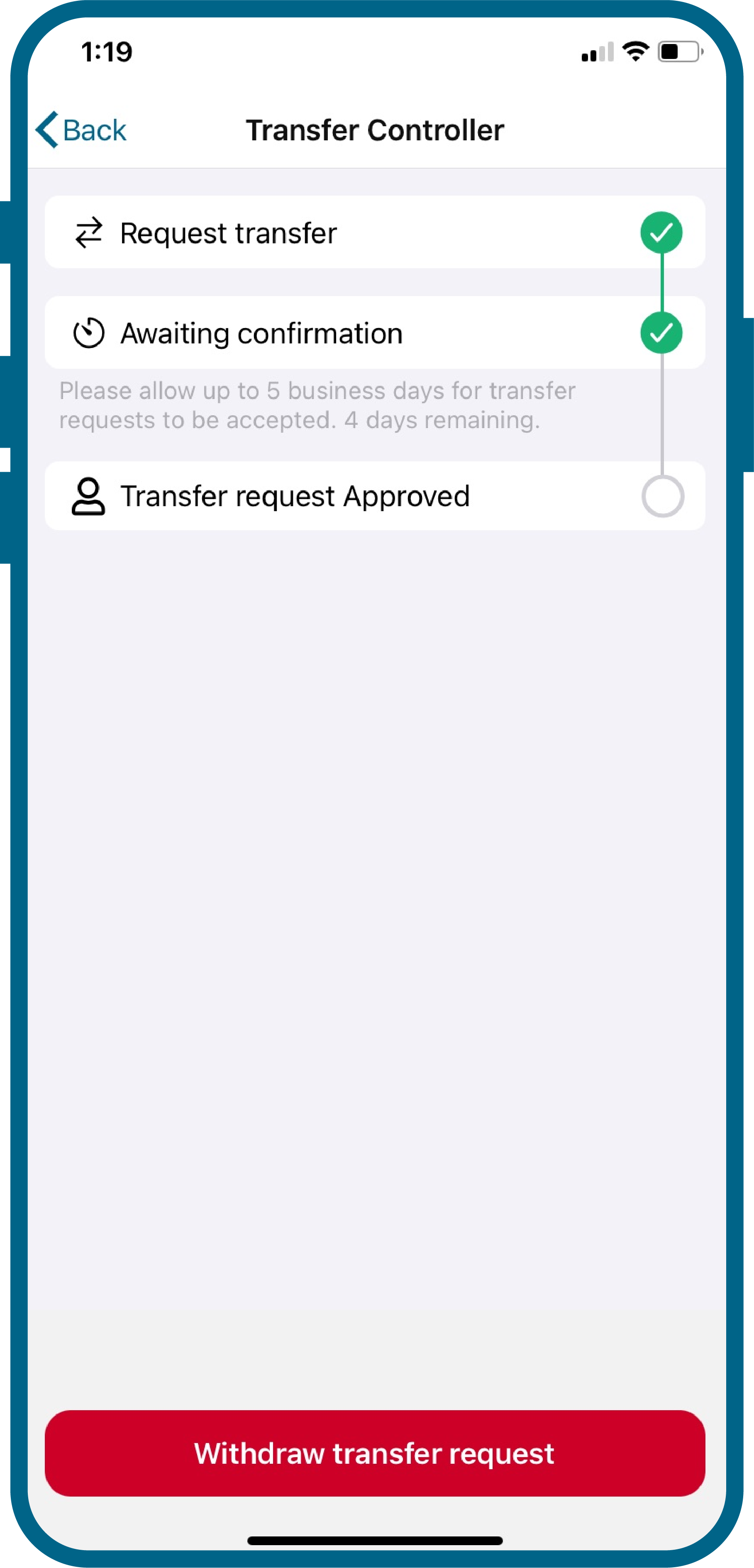- From the app's home screen, you can view the status of your requested transfer under Your Notifications.