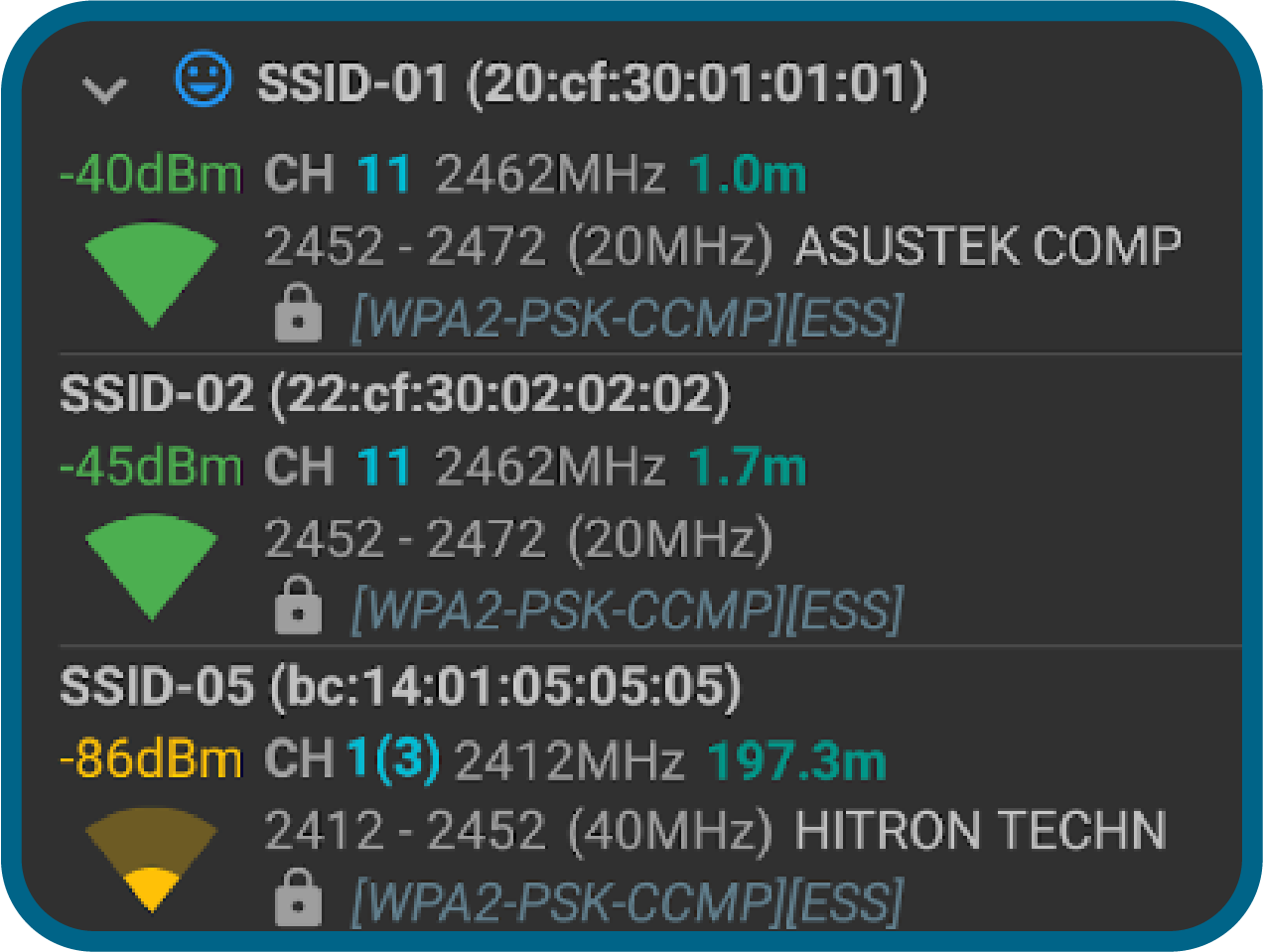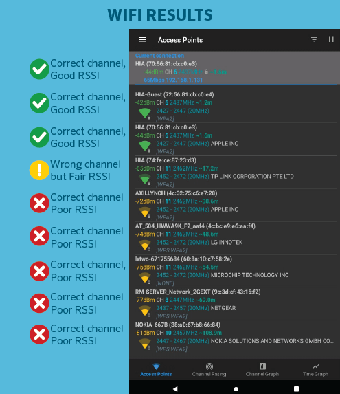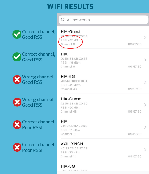 Measure the RSSI for your Wi-Fi network name on channels 1-11.