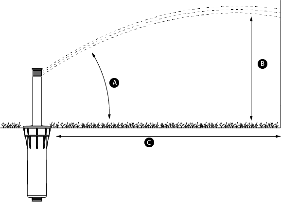 The trajectory and spray height of the water stream leaving a sprinkler nozzle is important information when designing and installing irrigation systems. These spray nozzle trajectory charts are designed to help determine how close a sprinkler can be placed to an object, such as a fence or hedge, without obstructing the spray pattern. All information shown is at optimum operating pressures.