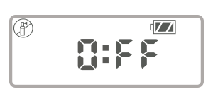To turn your controller off, press the button until the icon and Off is displayed on screen. After a short period of time the display will shut off to retain battery power. To return the controller to auto programming mode, press the button. The controller will immediately return to auto programming mode and will display the time and battery life indicator.