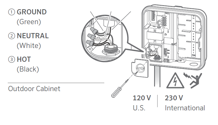 P2C models are prewired with a power cord and plug for simple installations in both indoor and outdoor applications. If the controller is to be powered by direct line voltage, follow these wiring instructions:
