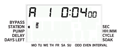 - The station number will flash. Press the ← or → button to scroll through the stations and use the + and - buttons to adjust the station run times.