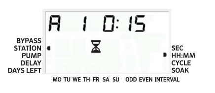 - The display will show the last program selected (A, B, or C) and the station number selected. The run time for that station will flash. You can switch to another program by pressing the PRG button.