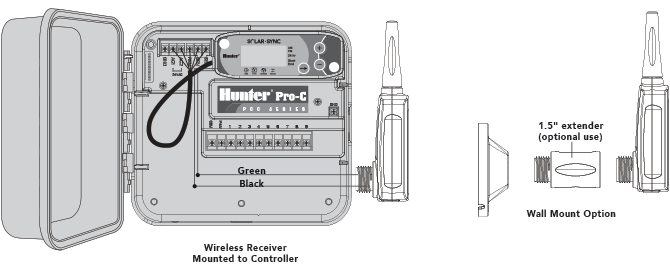 The Pro-C is compatible with the Hunter Solar Sync. Solar Sync is a sensor system that will automatically adjust the Pro-C controller’s watering run times (based on changes in local climate condition) by using the Seasonal Adjust function. The Solar Sync uses a solar and temperature sensor to determine evapotranspiration (ET), or the rate at which plants and turf use water, and also includes Hunter Rain Clik and Freeze Clik technology that will shut down irrigation when it rains and/or during freezing conditions.