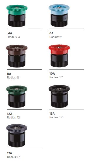 | 12A | Pro Adjustable Nozzle, 12' radius, 0° to 360° adjustable arc, Dark Green |