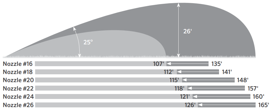 | #20 Nozzle | 60 | 23' | 65.5' |