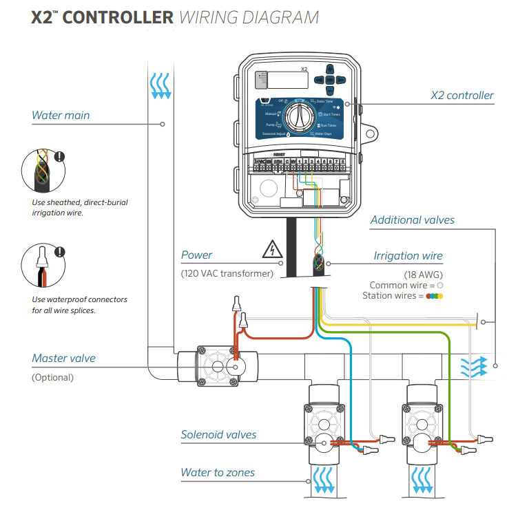 Installation of the X2 should only be done by trained personnel. Please refer to the example and instructions below for connecting the controller to the valve.